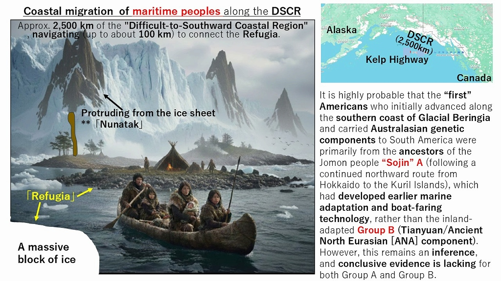 It is highly probable that the pioneers were the Hokkaido Sojin, who followed a maritime-skilled coastal route via the Hokkaido-Kuril Islands and Glacial Beringia, representing an earlier dispersal. This was subsequently followed by the later broad dispersal of the inland-adapted Tianyuan/ANA lineage.